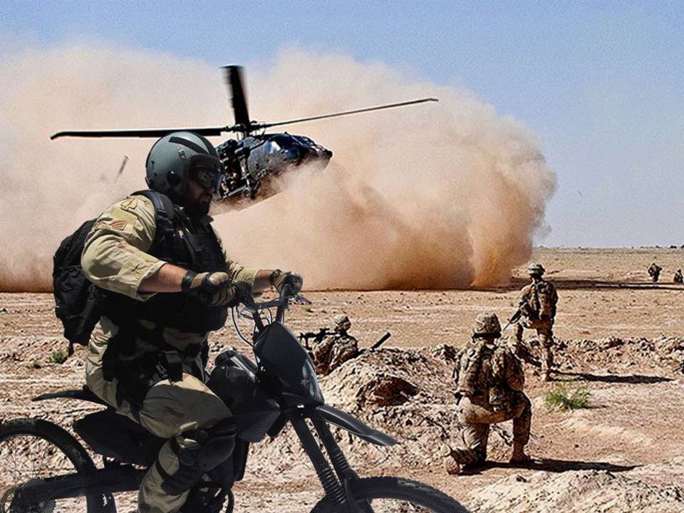 This bike seeks to explore capabilities not available in over 100 years of motorcycle history. My proof of concept model is also the world lightest dirt bike at 75lbs with not attempt to lighten it. Never before has it there been an option to carry a full size dirt bike been able to be parachuted, backpacked, put in a trunk, brought indoors or taken through an airport. It can easily become the world simplest motor cycle to manufacture, as my Afghan interpreter welded the proof this concept model together with a car battery and a coat hanger!